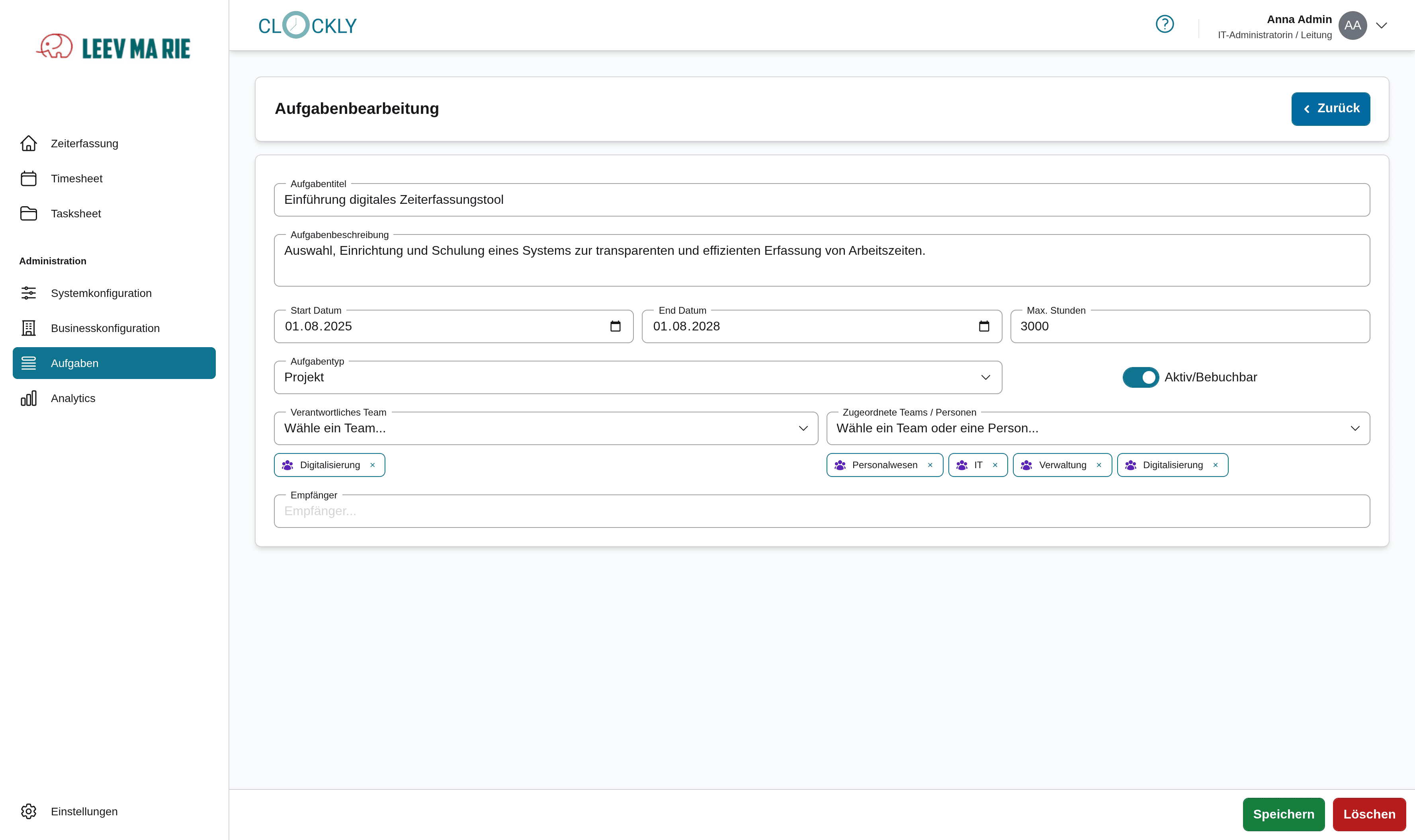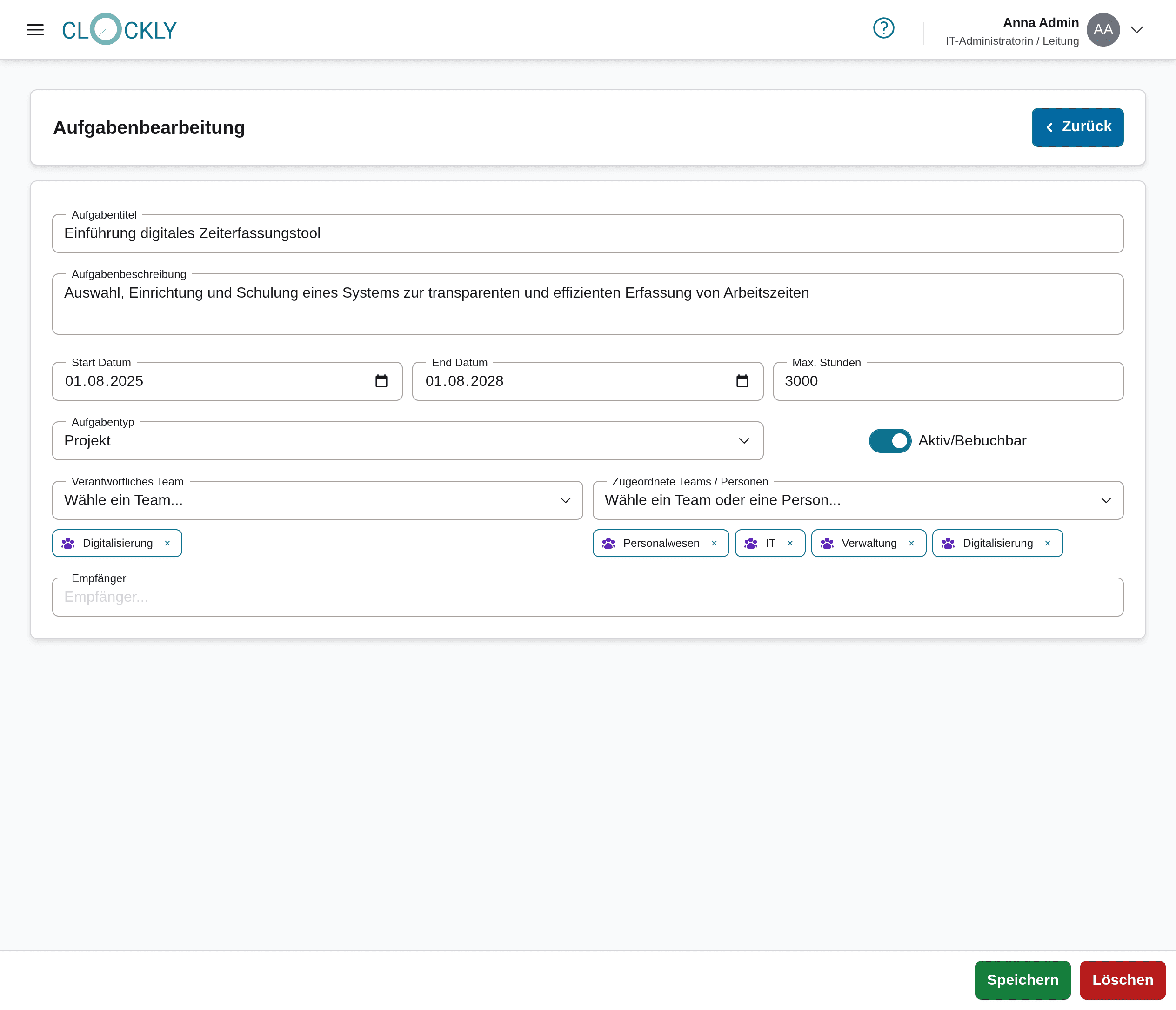 - Aufgaben-/Projektzuweisung auf User- und Team-Ebene